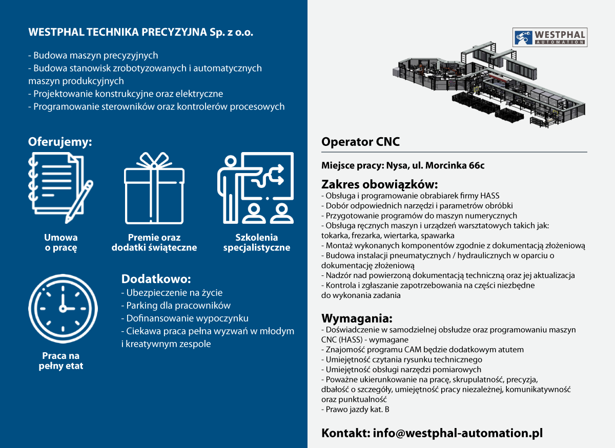 Przemysł automatyki przemysłowej który jest obszarem naszego działania daje szerokie możliwości rozwoju zawodowego. Pozwala zajmować się tym co naprawdę lubimy : projektowaniem, programowaniem, budową instalacji elektrycznych, pneumatycznych, cyfrową obróbką skrawaniem i wielu innych.